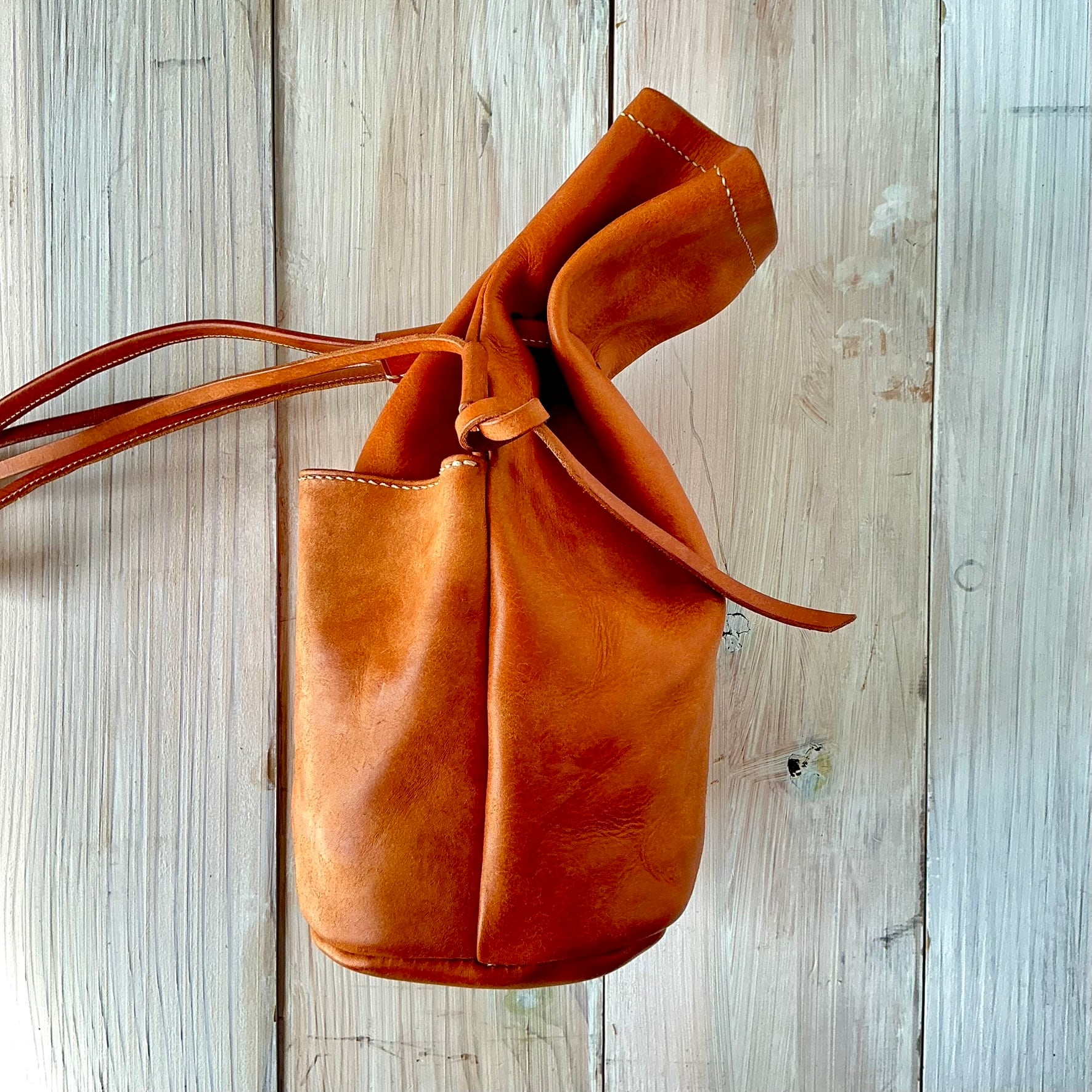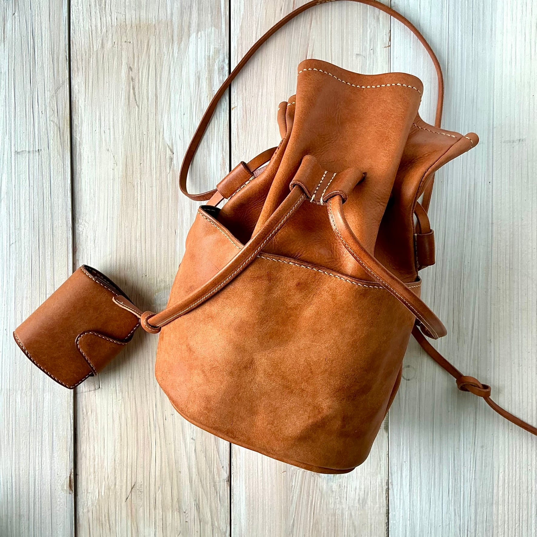 ストラップの長さが自由に調節可能なので手提げ・肩掛けとスタイリングに応じてデザイン変化を楽しめます。機能性とタンニン鞣しレザーならではの経年変化を楽しんでください。