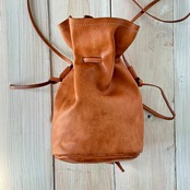 お洒落なコンパクト巾着バッグ イタリアンレザーブラウン使用 送料無料